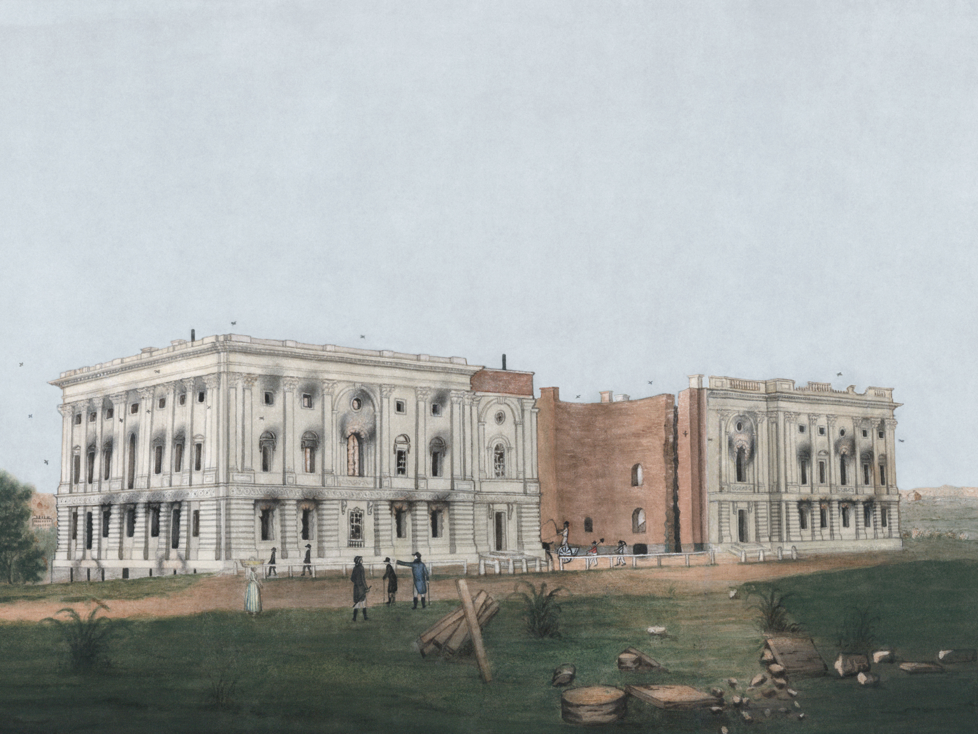 Image: Munger, George. The ruins of the U.S. Capitol. 1814. Library of Congress, Washington. Via Wikimedia Commons.