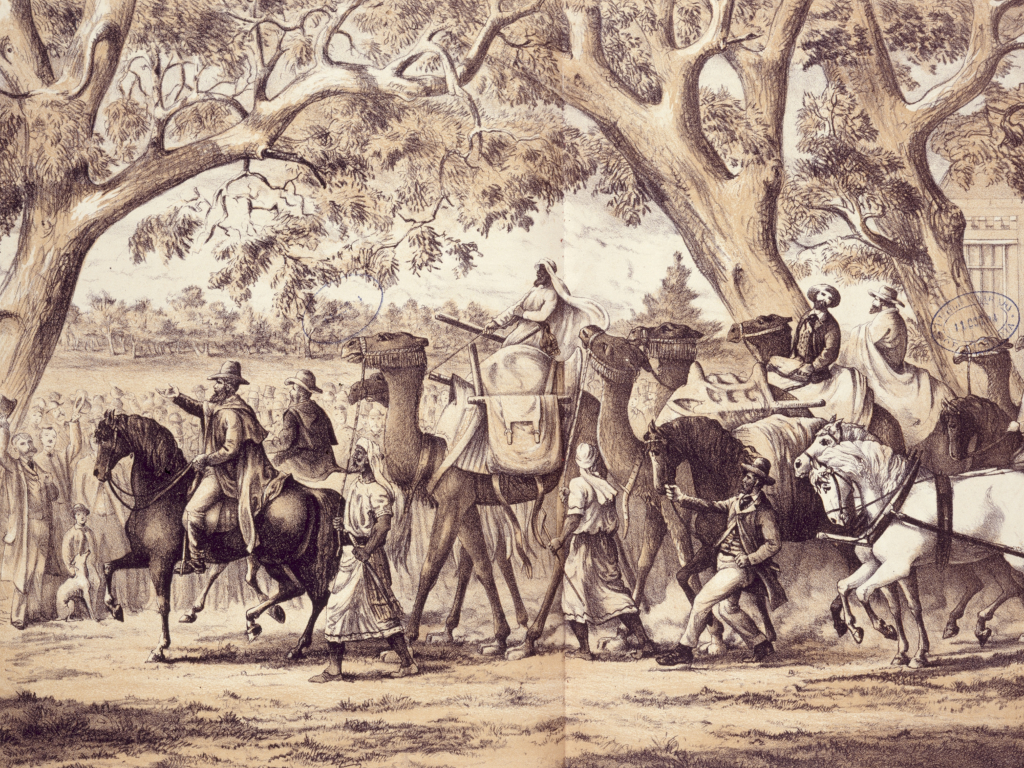 Image: “J.D.”. The Departure of the Burke and Wills Expedition. 1881. Lithograph. State Library of Victoria, Melbourne. Illustrated Australasian News: 4th May 1881. Via Culture Victoria.