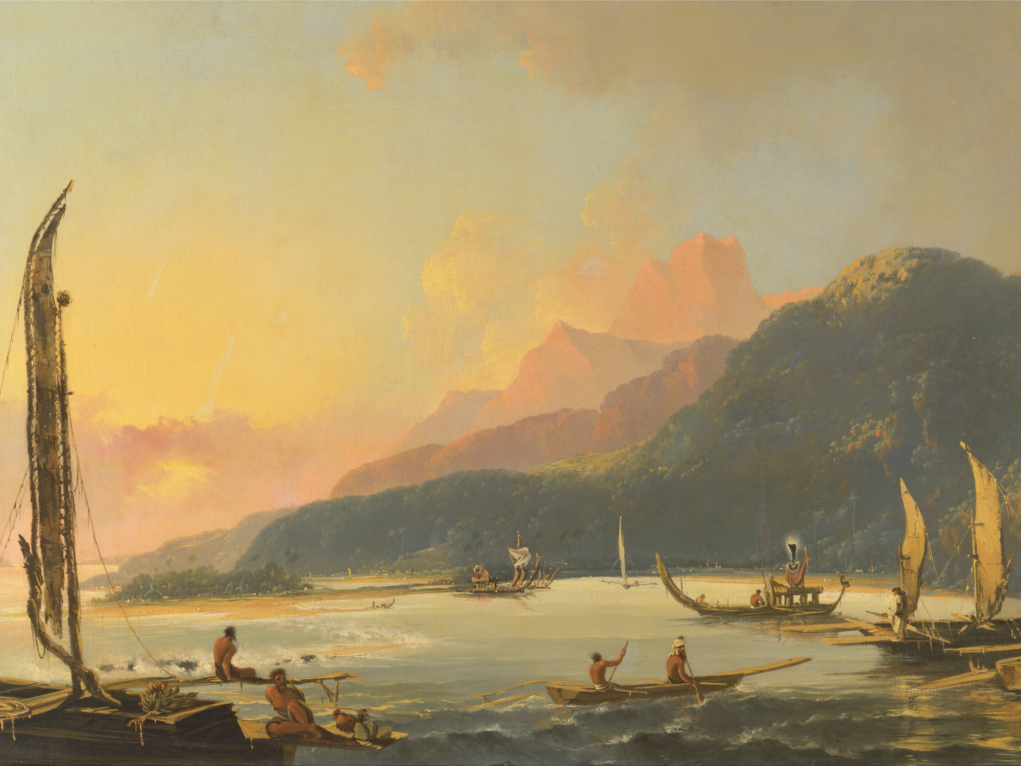 Image: Hodges, William. Tahitian War Galleys in Matavai Bay, Tahiti. 2nd October, 1776. Oil on canvas. Yale Center for British Art, New Haven. Via Wikimedia.