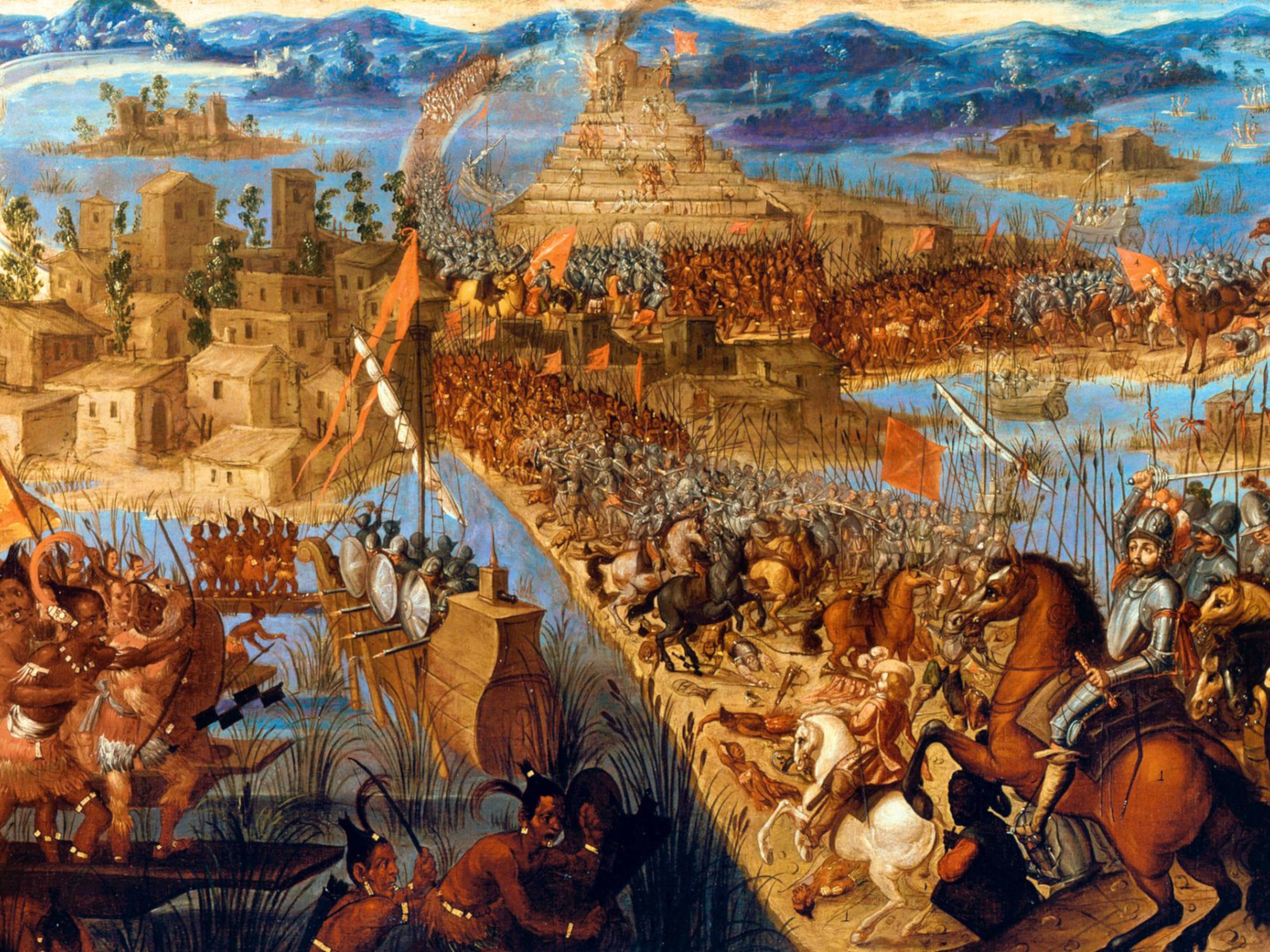 Image: Unknown. The Conquest of Tenochtitlán. Oil on canvas. Circa 17th century. Via Wikimedia.
