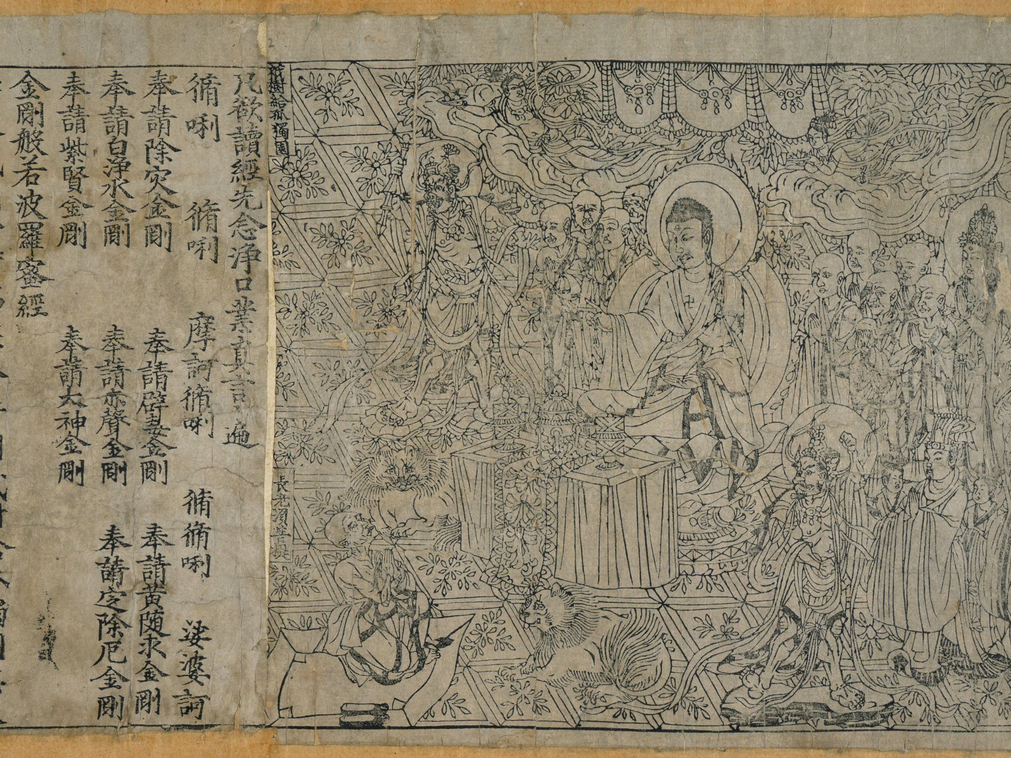 Image: Unknown. Frontispiece, Diamond Sutra. Ink on paper. 868. Via Wikimedia.